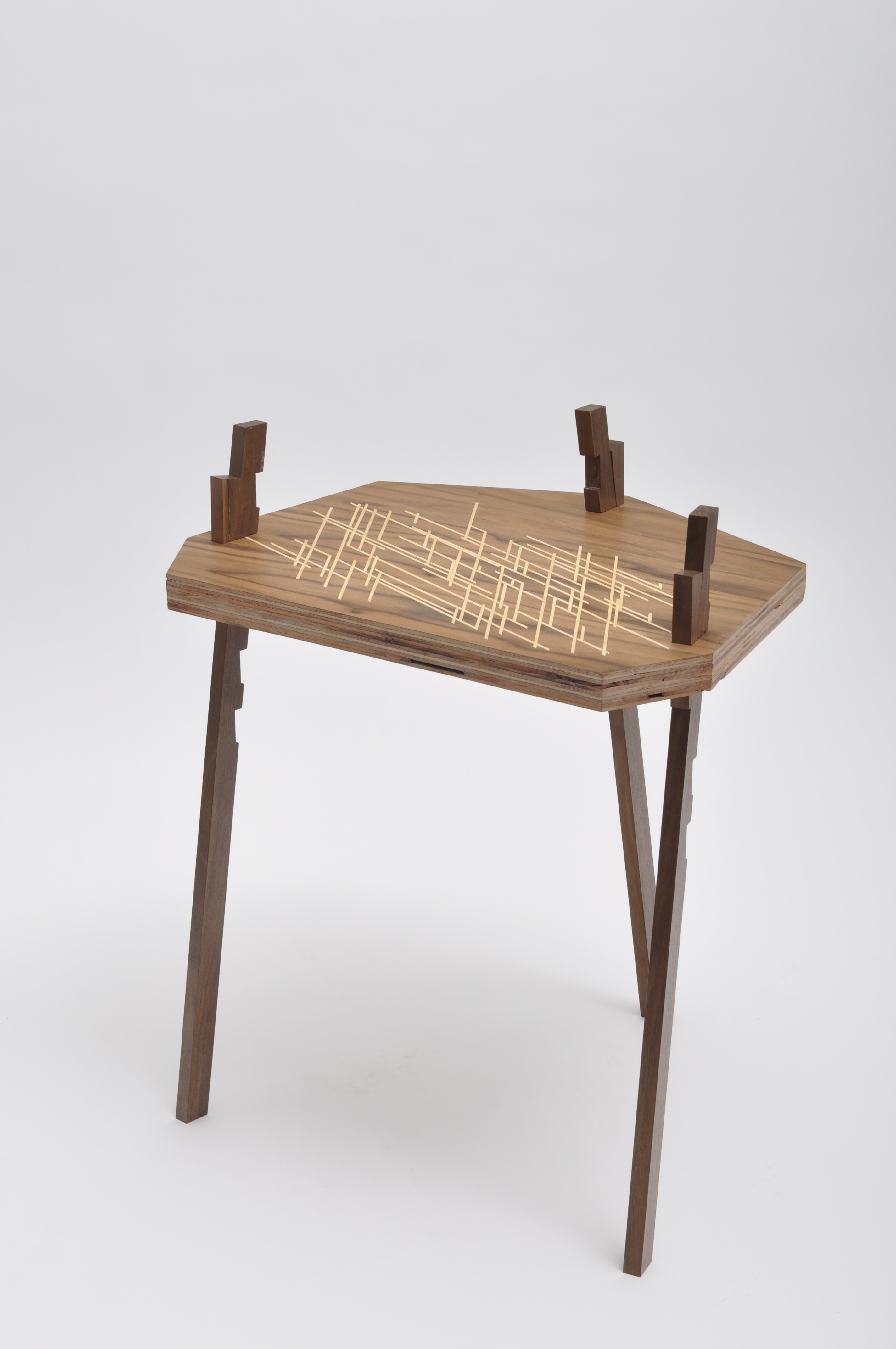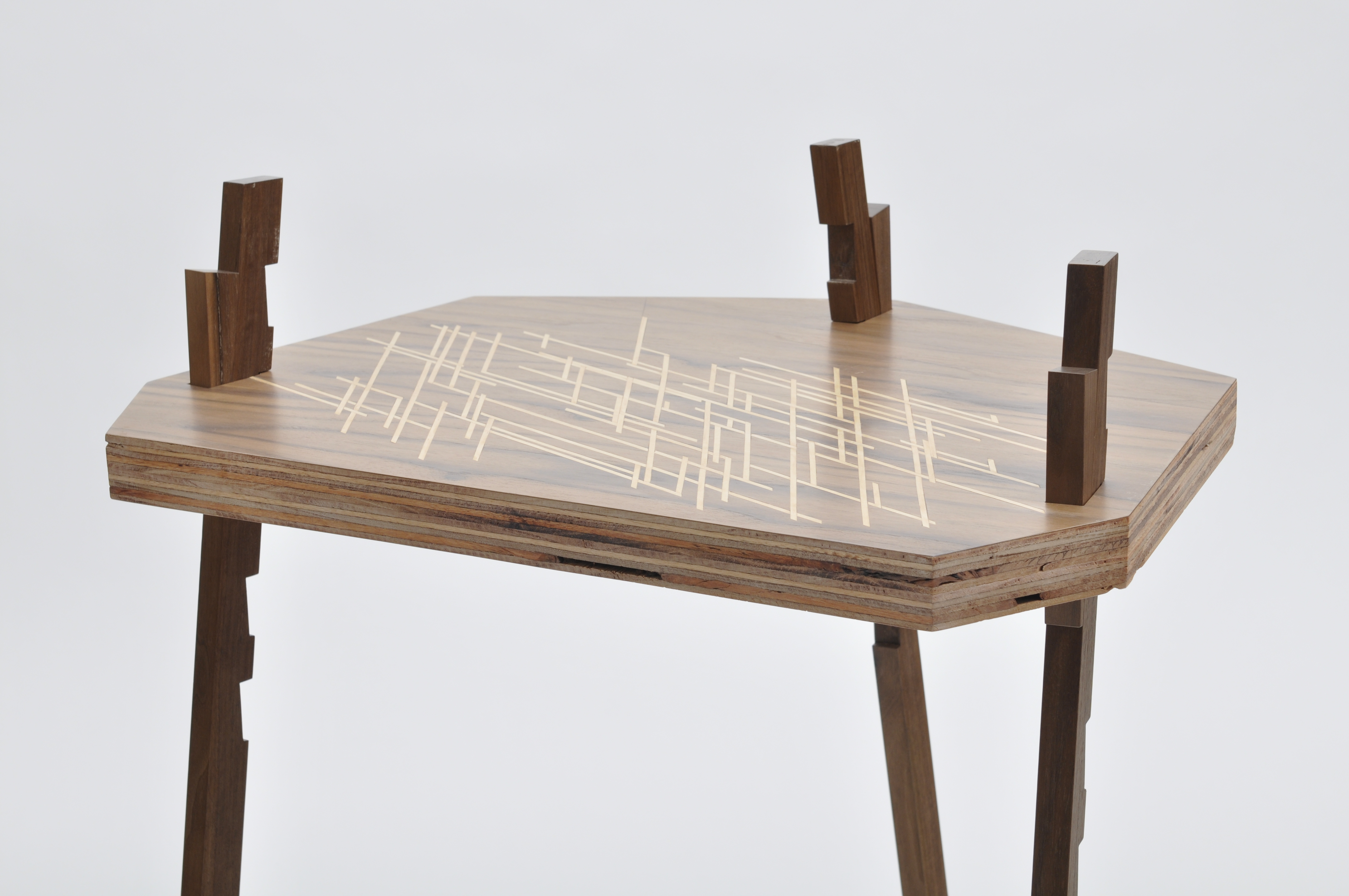 maple and walnut marquetry on plywood + walnut legs and wedges